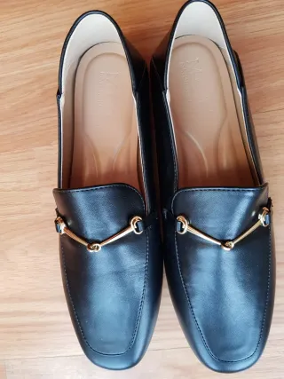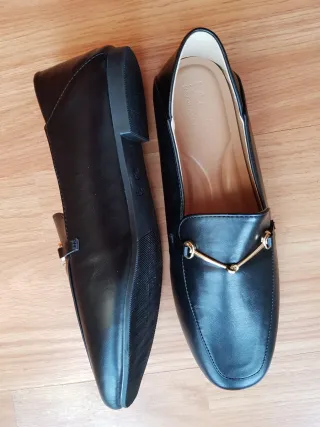 Preciosos zapatos de mujer de la marca Graceland. Son de color negro y tienen un diseño elegante y sofisticado. - Modelo de mocasín con detalle trenzado. - Material. - Tacón bajo. Precio negociable.