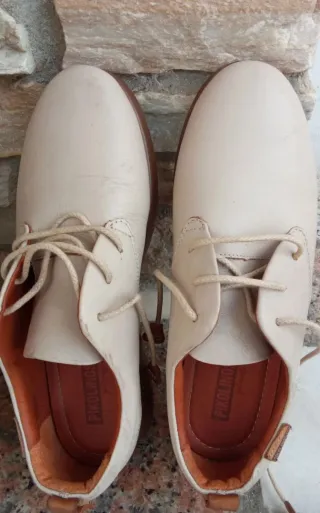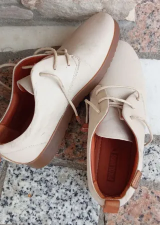 Zapatos de piel Pikolinos en tonos beige y marrón. - Cierre con cordones. - Detalle de costuras. - Suela de goma.