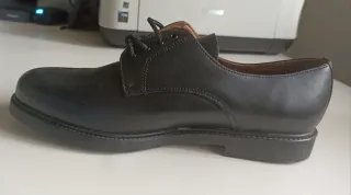 Elegantes zapatos de vestir de la marca Formula Joven. Son de piel, suela de goma talla 42. Se han utilizado poco, en buen estado. - Diseño elegante y sofisticado. - Acabado brillante. - Cordones para un ajuste seguro.