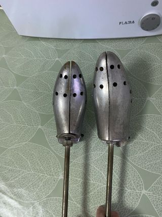 Par de hormas metálicas para dar forma a los zapatos. Son ajustables y cuentan con múltiples perforaciones. Una es para un pie más grande y otra para más pequeño - Material: Metal - Diseño perforado Posibilidad de entrega en mano en Madrid incluso en Irun