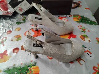 Zapatos de tacón para eventos elegantes. Talla 36. Color plata. Está en muy buenas condiciones y tiene su caja.