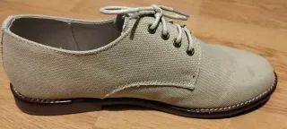 Zapatos de tela en color beige, talla 39. - Cierre con cordones. - Suela de goma. - Diseño clásico.