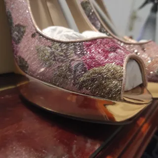 Elegantes zapatos de tacón con un diseño super elegante. Tacón de 11 cms,puestos sólo en una ocasión muy especial, ojalá quien se los lleve los disfrute tanto como los disfruté yo aquel día.