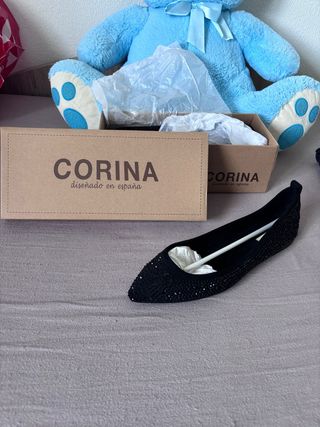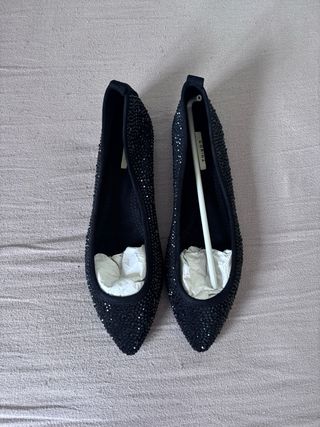 Elegantes zapatos planos para mujer. - Diseño moderno y cómodo. - Detalle de cordones con detalles brillantes. - Costuras decorativas en la suela. - Es un 41 pero vienen más pequeños.