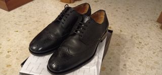 Elegantes zapatos de vestir estilo Derby Brogues. -Un sólo uso. - Color negro. - Diseño clásico con picados. - Cierre de cordones.