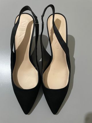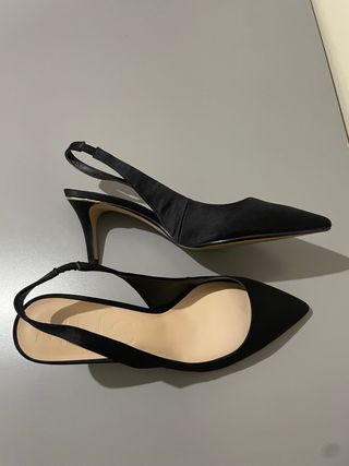Elegantes zapatos de salón destalonados de Mango. - Diseño de punta fina. - Correa trasera ajustable. - Acabado en raso