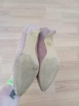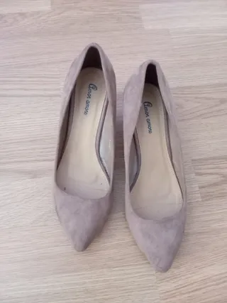 Preciosos zapatos de tacón de ante en color beige de la marca Farrutx, talla 37. Son de estilo clásico y elegante. Tienen signos de desgaste de ahí el precio