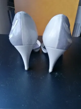 Elegantes zapatos de raso en tono plateado. - Material exterior de raso. - Diseño de tacón fino.