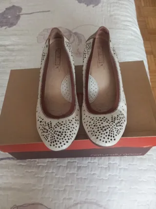 Elegantes zapatos Pikolinos con un diseño perforado. - Color blanco con detalles en marrón. - Suela cómoda para el día a día.