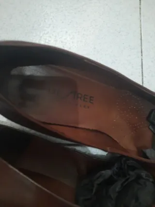 Zapatos estilo clásico extra confort con punta cuadrada Empeine 100% cuero Forro interior 100% cuero Talla 36 Color marrón brandy Nuevos sin usar con su caja Diseño con recortes florales. Tacón bajo y cómodo.