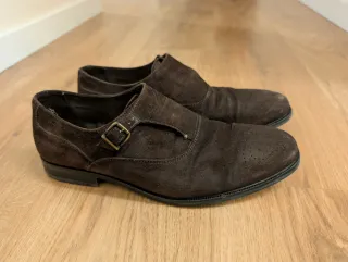 Elegantes zapatos de ante en color marrón. - Diseño Monk Strap con hebilla. - Detalle de picado en la puntera. - Material: Ante. No se hacen envíos