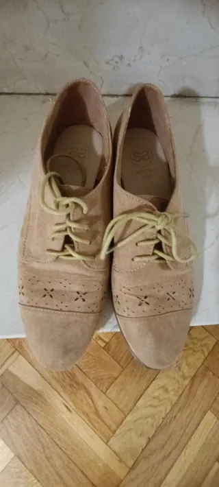Zapatos de ante con cordones. - Material: Ante - Color: Marrón - Diseño con perforaciones sutiles - Cordones oscuros
