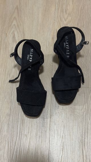 SE DA EN MANO EN STA CRUZ DE TENERIFE Preciosos zapatos de tacón de la marca MARYPAZ. Son de color negro y talla 36. - Material: ante. - Tipo: Sandalias de tacón. - Altura del tacón: Media.