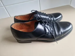 Elegantes zapatos de vestir de la marca Yanko en color negro. Perfectos para ocasiones formales. - Utilizados máximo una docena de veces, están en muy buen estado - Diseño clásico. - Cordones. - Puntera redonda. - Talla UK 9 1/2, Talla EU 43,5