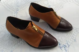 Elegantes zapatos de piel con diseño bicolor y tacón cómodo. - Material exterior de piel. - Combinación de beige y marrón en la puntera. - Tacón de altura media para mayor confort: 5,5cm - Están como nuevos, tienen varios usos. Bien cuidados. NO ENVÍO, venta en persona.