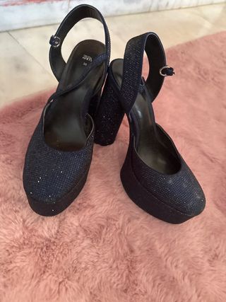 Zapatos plataforma tipo cuñas, apenas usadas, con tiras de brillo