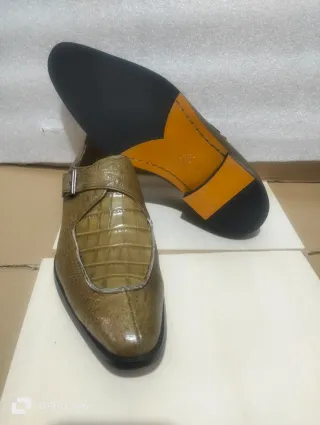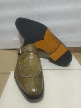 Elegantes zapatos de vestir para caballero con un diseño único. - Acabado texturizado tipo cocodrilo. - Detalle de hebilla metálica. - Suela de goma y cuero.