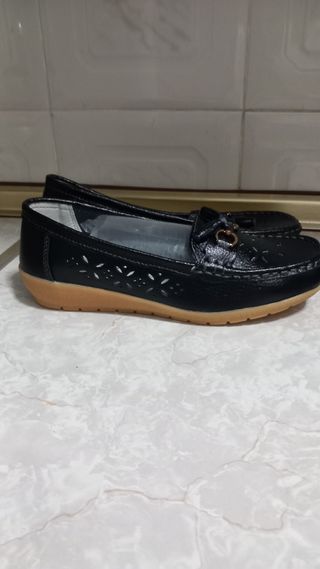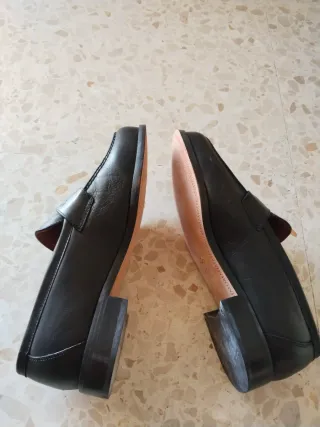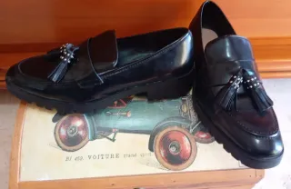 Elegantes mocasines de la marca ANTEA en color negro. Un calzado clásico con un toque moderno. Número 37 Tiene pequeño roce en la puntera ( ver foto)