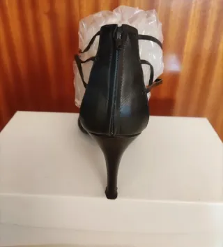 Elegantes zapatos de tacón con diseño de tiras. - Color negro. - Tiras finas cruzadas en el empeine y tobillo.