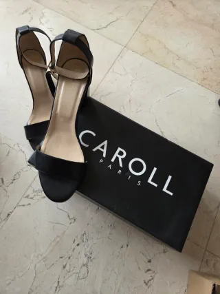 Elegantes zapatos de tacón CAROLL en color negro. Un clásico que no puede faltar en tu armario. - Diseño de tiras. - Cierre con hebilla.