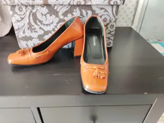 Cuñas de piel de la marca Marila, sin estrenar. - Material exterior: Piel. - Color: Naranja y marrón. - Talla: 39.