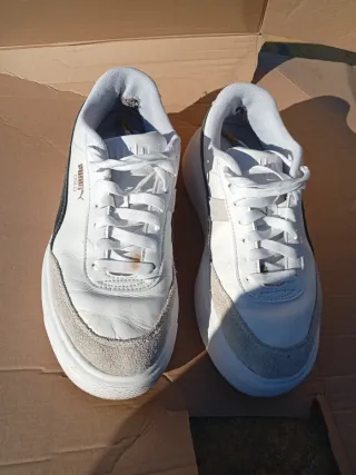 Zapatos Puma de estilo casual. - Diseño en blanco con detalles en beige. - Cierre con cordones.