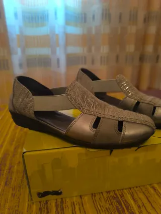 Elegantes zapatos de mujer con diseño de tiras. - Color dorado y plateado. - Estilo 24 horas para mayor comodidad.