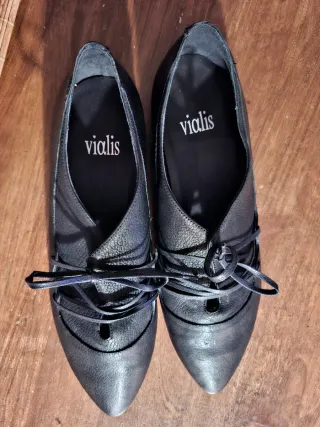 Elegantes zapatos de piel Vialis. - Material: Piel - Talla: 38 - Color: Negro - Diseño con cordones y punta fina Nunca utilizados.