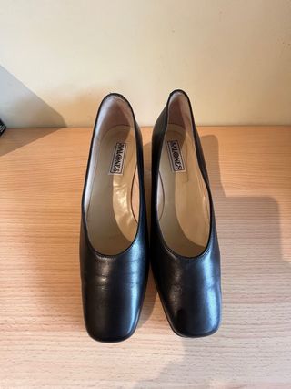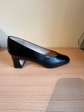 Elegantes zapatos tipo salón en color negro. - Marca: SALONES - Color: Negro - Talla L - Suelas cuidadas, tacón de 5’5 cm