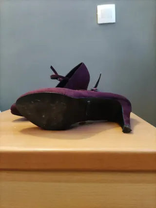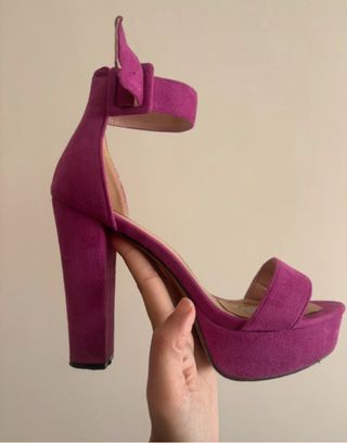 Elegantes zapatos de tacón alto con un acabado de terciopelo. - Material: Terciopelo. - Color: Fucsia/Morado. - Talla: 38. buen estado... usados unas 3 veces