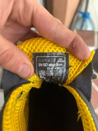 Zapatos de seguridad Adroa S3. - Talla 42. - Certificación EN ISO 20345:2011. - Categoría S3+C+SRC. - Lote: 230434. - Diseño en negro y amarillo.