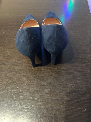 Elegantes zapatos de salón de la marca Zara. - Color azul. - Diseño de punta fina. - Material tipo ante.
