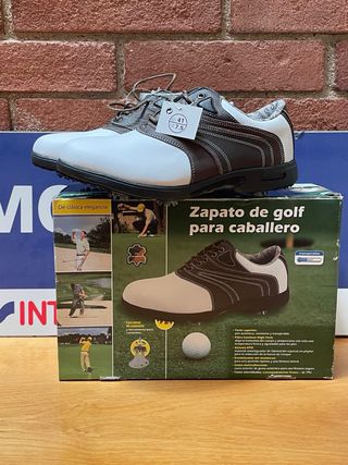 Zapatos de golf de estilo clásico con un diseño elegante. - Parte superior de cuero sintético y malla. - Suela de goma con tacos para un agarre óptimo. - Forro interior transpirable para mayor comodidad. - Cierre de cordones. PRECIO PVP 145 euros que dejo en....