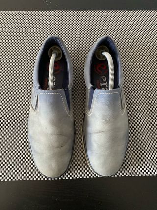 Zapatos de vestir en color azul con cordones blancos. - Material exterior de ante. - Suela de goma. - Cierre con cordones. Como nuevos, puestos en un par de ocasiones.