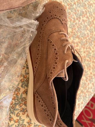 Elegantes zapatos de vestir para hombre a estrenar. Talla 42. Precio original: 69,95 euros - Material exterior de ante. - Diseño tipo Oxford con picados decorativos. - Cordones para ajuste. - Suela de goma.