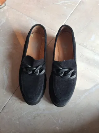Preciosos zapatos tipo mocasín, Son de color negro y están en muy buen estado. Usados solo una vez - Material: ante.