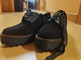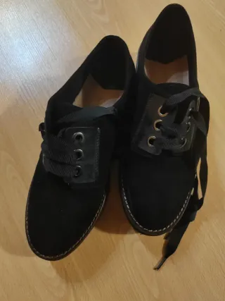 Zapatos negros de cordones, talla 37, a estrenar. - Diseño tipo Oxford. - Cierre con cordones. - Material exterior de ante.