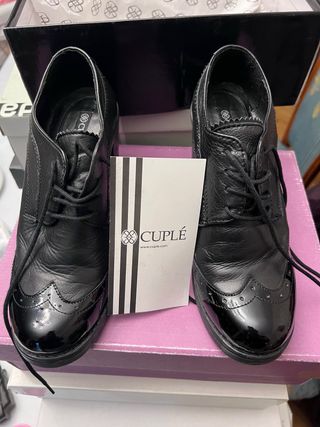 Elegantes zapatos de vestir de la marca Cuplé. - Diseño clásico con cordones. - Acabado brillante en la puntera. - Detalle de picado decorativo. - Tacón 9 cm.