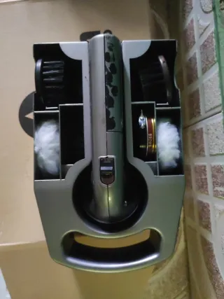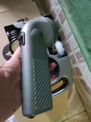 Práctico limpiador de zapatos eléctrico, ideal para mantener tu calzado impecable. Su diseño compacto lo hace fácil de llevar. - Incluye cepillos y almohadillas. - Funciona con pilas (no incluidas). - Mango ergonómico para un agarre cómodo.