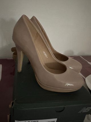 Elegantes zapatos de tacón en color beige, perfectos para cualquier ocasión. Se encuentran en buen estado. - Tacón alto y plataforma. - Diseño clásico y versátil. - Acabado brillante.