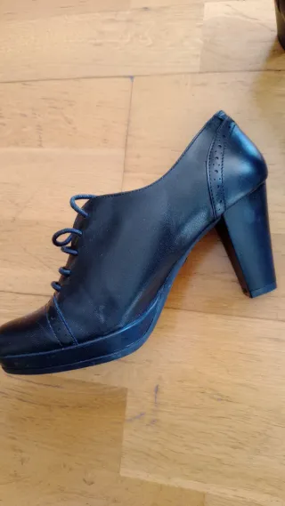 Elegantes zapatos de piel con un diseño de cordones. Talla 36. - Material: Piel. - Color: Negro. - Tacón grueso. - Plataforma delantera.