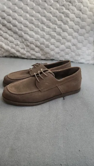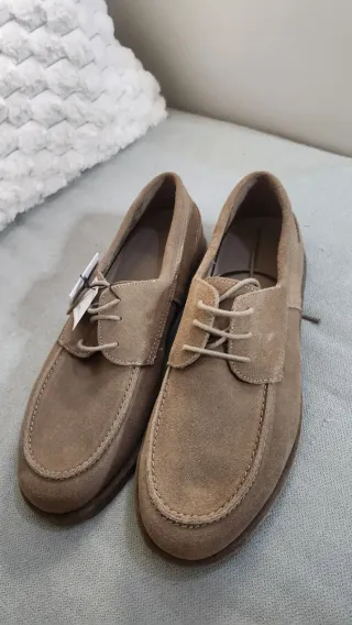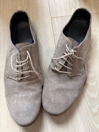 Elegantes zapatos de vestir de ante en tono beige, perfectos para ocasiones especiales o para el día a día. - Material exterior de ante. - Diseño de cordones. - Suela de goma.