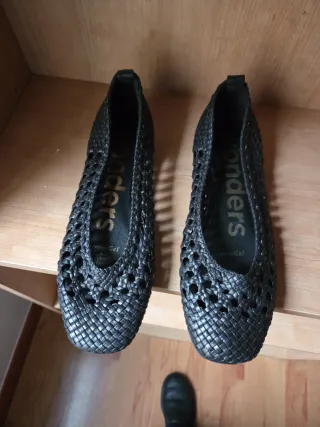 Elegantes zapatos planos de la marca Wonders en color negro. Su diseño tejido los hace únicos y cómodos. - Diseño tejido. - Color negro. - Marca Wonders.
