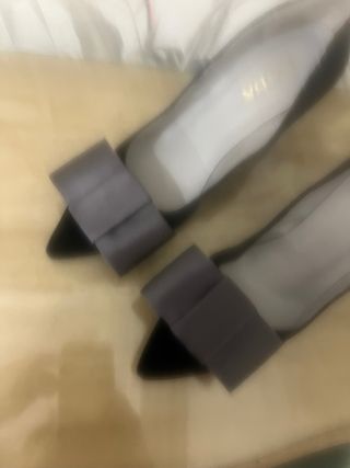 Elegantes zapatos de tacón con un diseño clásico. Usados solo una vez para un evento. - Tacón de 10 cm de altura. - Adorno de lazo en la punta.