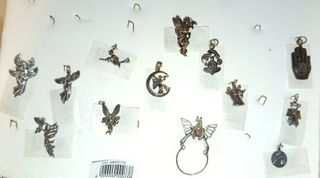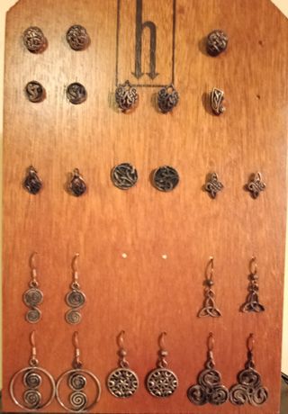 Pendientes de plata con diseños de brujería.