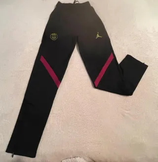 Pantalón de chándal con un diseño moderno y detalles deportivos. - Logo de Paris Saint-Germain en la pierna izquierda. - Logo de Jordan Jumpman en la pierna derecha. - Inserciones de color burdeos en los laterales.