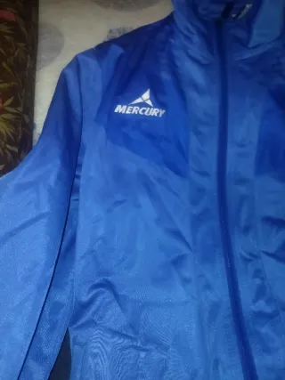 Conjunto deportivo de chándal. - Chaqueta azul con cremallera. - Pantalón negro. - Logo de Mercury en ambas prendas.
