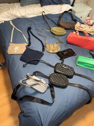 Pack de 14 bolsos de diferentes estilos y tamaños. - Bolsos de mano y bandoleras. - Diseños tejidos y de piel sintética. - Tonos neutros y vibrantes. Misako, bershka, stradivarius, hechos a mano, etc etc