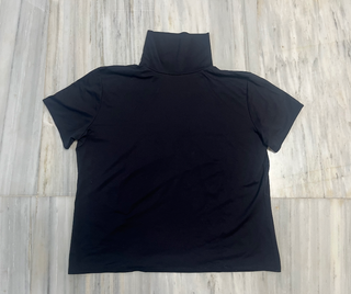 Camiseta básica negra con cuello alto (tipo cisne) y manga corta. Prenda ligera, elástica y agradable al tacto que se adapta bien al cuerpo. ✨ Color: Negro ✨ Marca: Festa ✨ Talla: 50 ✨ Medidas: hombros 56cm / axilas 58cm / largo 57cm / largo manga 18cm / ancho manga 16cm ✨ Composicion: 90% poliamida / 10% licra