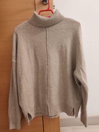 Jersey de punto de cuello alto color beige de la marca Kiabi. Talla L. Usado solo dos veces, en perfectas condiciones. Tengo el pantalon a juego publicado al la venta tambien.